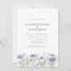 Elevem seu dia especial com nosso Convite de Casamento de Flores Selvagens do Jardim Azul Francês. Este belo convite apresenta um design boho-chic com flores pintadas à mão, incluindo morangos e híbridos, aliado a delicadas borboletas azuis. A frente mostra uma elegante tipografia azul e um charmoso design de campo floral no fundo. A parte de trás do convite revela um buquê pintado de flores silvestres, com cheio, com uma borboleta branca, criando uma maravilhosa guarita para seus convidados. Perfeito para casamentos de jardim, cerimônias ao ar livre, ou qualquer evento inspirado pela beleza e elegância eterno da natureza.