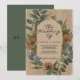 Convites de casamento de flores silvestres com madeira marrom rústica com belas folhagens desenhadas à mão em verde, laranja escuro e dourado. Este convite abstrato moderno e elegante é perfeito para qualquer garota sofisticada e chic. Este design é ideal para um evento de festa moderno. Personalize este design com sua própria mensagem e informações personalizadas. Todos os designs são impressos