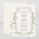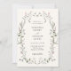 Elegante e sofisticado, este convite de casamento apresenta lindas flores silvestres pastéis pintadas à mão em aquarela rosa, roxo e azul, e folhagens de sage verde claro com uma adorável borboleta branca disposta em uma linda coroa vintage em um fundo marfim. O verso inclui um lindo buquê correspondente com o monograma da noiva e do noivo e um site de casamento opcional.