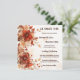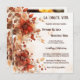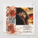 Um convite de casamento elegante, com flores de aquarela em laranjas vermelhas e vibrantes italianas. No verso está sua foto personalizada com um modelo de código QR fácil de personalizar. Bonita para um casamento ou queda com temas italianos ou para um casamento de Natal.