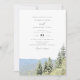 Este convite para o casamento apresenta uma pintura aquosa do horizonte da floresta do Parque Nacional de Sequoias e uma foto opcional ao fundo. Edite com facilidade o texto *maioria* para atender às suas necessidades de eventos. Mude a cor de fundo e adicione sua própria foto ao fundo, se quiser, com o site do casamento.