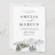 Convite de casamento no inverno Whimsical. Convide familiares e amigos para o seu casamento com este convite de casamento. Apresenta ilustrações aquáticas de floresta de inverno de neve, tipografia simples e uma escrita elegante. Personalize adicionando nomes, data, hora, local e outros detalhes do casamento. Este convite de casamento para o tema da floresta de inverno é perfeito para casamentos no inverno.