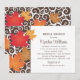 Celebre a noiva com este vibrante design de chá de noiva de casamento de outono, apresentando folhas de bordo vermelhas, laranja e douradas em destaque sobre um rico trabalho em relevo marrom e branco. O layout limpo fornece espaço para todos os detalhes do evento, incluindo anfitrião, contato de confirmação de presença e informações de registro em tipografia marrom quente. Personalize todos os campos para a sua celebração de noivado sazonal.