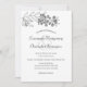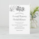 Este convite de casamento minimalista apresenta ramos de arte esboçada em preto e cinza, folhas e frutos ao longo da parte superior. A parte de trás do cartão combina com uma tonalidade dos frutos. Personalize o design com os detalhes do seu casamento nos campos do modelo.