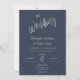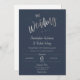 Crie um convite personalizado e esplêndido, chique e minimalista para seu casamento ou aniversário. Este convite para o casamento apresenta um roteiro de caligrafia espaçoso e bonito escrevendo em falso cartaz prateado com um fundo azul marinho. Você pode personalizá-lo facilmente com seu próprio texto e personalizá-lo de acordo com o seu gosto. Por favor, note: "-The- Wedding" e a trabalho de arte do anel não podem ser editadas. Nota complementar: O impressão de folha prateada é um efeito falso de folha prateada. Não é a folha de prata a quente.