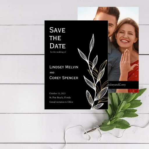 Personalize este preto perfeitamente projetado para salvar o anúncio de data. Personalizar texto e fotografia.