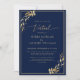 Convite Casamento de Folhagem Azul e Ouro do Marinho Virtu