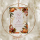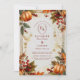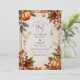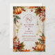 Uma composição quente e convidativa no outono que inclui abóboras aquosas, folhas de outono, bagas e folhagem sazonal em tons ricos de colheita. Perfeito para uma celebração de casamento outono aconchegante, rústica ou de fazenda.
