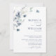 Convite Casamento de Folhagem Elegante Dusty Blue Boho Win