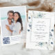 Convite Casamento de Folhagem Elegante Dusty Blue Boho Win
