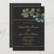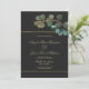 Convites de casamento florais de folhagem de eucalipto preto, verde pastel e dourado pintados à mão são perfeitos para qualquer garota glamorosa e sofisticada. Este design é perfeito para eventos de festa modernos e elegantes. Desenhe com sua própria mensagem e informações. Todos os desenhos são impressos.