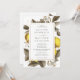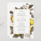 Este design de casamento é detalhado com um impressão botânico de limão-vintage e foi projetado para adicionar um toque único de citros às suas necessidades de papelaria de casamento. O fundo da placa é branco e o design apresenta 2 quadros dourados.