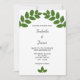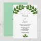 Convite de Casamento branco com folhas de Louro verde elegantes. O verso tem três folhas de louro em fundo verde esmeralda claro. Cartões de convite de casamento com folhas verdes.