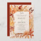 Convites de casamento elegantes em tons de burgundy, marfim, laranja e dourado com folhas de outono em aquarela são perfeitos para qualquer garota glamorosa e sofisticada. Este design de folhagem de outono é perfeito para eventos de festa modernos e elegantes. Desenhe com sua própria mensagem e informações. Todos os desenhos são impressos.
