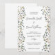 Personalize facilmente esses convites de casamento botânicos simples, mas elegantes, com nomes, datas, local e linha de recepção. Perfeito para casamentos de primavera, verão e jardim.