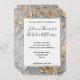 Convite Casamento de Folhas Douradas de Cinza prateada