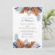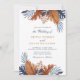 Convite Casamento de Folhas Marrom Rústico e Azul Meia-Noi