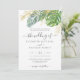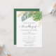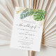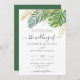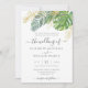 Este elegante convite de casamento apresenta uma design de aquarela de folhas tropicais exuberantes em tons de verde. As folhas são acentuadas com efeito falho de ouro, que adiciona um toque de luxo. O texto é impresso em uma fonte na moda preto de script de caligrafia, que é fácil de ler em relação ao fundo branco. Este convite é perfeito para um casamento de verão ou um casamento de destino em um local tropical.