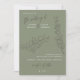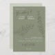 Um convite de casamento de eterno com imagens de eucalipto desenhadas à mão num fundo verde de sábio. O roteiro elegante e as fontes clássicas de serif se combinam para destacar os nomes do casal e os detalhes do casamento. Perfeito para casamentos inspirados na natureza ou minimalistas com um toque romântico.