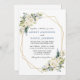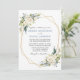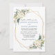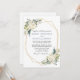 Watercolor Ivory White Floral Greenery Wedding Cartão de Convite para Casamento inclui rosas brancas de creme de marfim e verde botânico. Quadro Geométrico Dourado, Foto de Volta