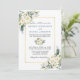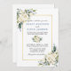 Watercolor Ivory White Floral Greenery Wedding Cartão de Convite para Casamento inclui rosas brancas de creme de marfim e verde botânico. Quadro Dourado, Foto de volta
