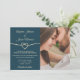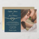 Coração elegante, sofisticada de folha de ouro em combinação com fundo azul marinho e fotografia personalizada do casal. Um convite para o casamento, simples e minimalista.