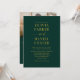 Estamos absolutamente apaixonados por este convite para casamento esmeralda verde e dourado — é rico, elegante e eterno tudo ao mesmo tempo. O fundo esmeraldo profundo emparelhado com texto em ouro macio e metálico cria um sentimento luxuoso e formal que é perfeito para uma celebração romântica. A design inclui espaço para uma foto pessoal, fazer que seja uma bela guarita para os seus convidados. O recurso de código QR adiciona um toque moderno conveniente — perfeito para direcionar convidados para sua página RSVP ou site de casamento em segundos. A mistura de tipografia clássica, um layout de crista minimalista e detalhes de ouro quente dá a este convite uma visão de ponta que funciona lindamente para casamentos de preto, jardim ou destino.