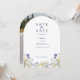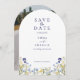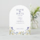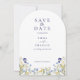 Chic boho simples flores silvestres Casamento Salve a data com caligrafia azul com foto no verso