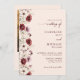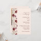 Convite de burgundy de casamento para caligrafia elegante, com design de flor silvestre, código QR e informações mais detalhadas no verso.