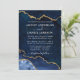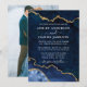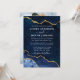Cartão de Convite para Casamento de Geodo Marble Agate Azul e Dourado Elegante Moderno - Foto de volta