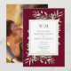 Com delicadas folhas de folhagem em aquarela em um fundo burgundy, este convite de casamento botânico elegante pode ser personalizado com suas iniciais de monograma e informações especiais do dia do casamento e sua foto especial no verso. Criado por Thisisnotme©