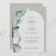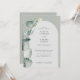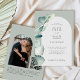 Elegante barato de orçamento verde de sábio avançado, tudo em um convite de casamento FOTO de noivado com a arca botânica boêmica, script de tipografia simples e seu CÓDIGO QR (gerado automaticamente) para o site, RSVP on-line, acomodação, direções e detalhes.