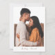 Um convite de casamento moderno, chico e elegante com nomes personalizados com caligrafia escrita à mão em terracota. A frente do convite apresenta uma fotografia do casal.