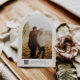 Precisa de um convite clássico e minimalista de casamento? Nossa design apresenta uma foto no verso, a tipografia moderna do roteiro e o código QR no seu site de casamento. Adicione um toque único e elegante ao seu dia especial com nossos convites para casamento de fotos! Fotos de prostooleh / Freepik.