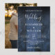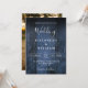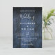 Este convite de casamento com fundo de madeira de celeiro boho rústico azul pode ser personalizado com suas informações em tipografia moderna e uma foto especial no verso. Projetado por Thisisnotme