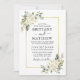 Watercolor Ivory White Floral Greenery Wedding Cartão de Convite para Casamento inclui rosas brancas de creme de marfim e verde botânico. Dourado quadro. Foto de volta.
