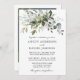 O Cartão de Convite para Casamento de Cores Biológicas Elegantes Modernos inclui folhas de eucalipto, folhagem botânica verde, folhas azuis empoeiradas e outros belos lençóis botânicos. Foto de volta.