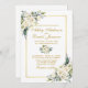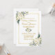 Watercolor Ivory White Floral Greenery Wedding Cartão de Convite para Casamento inclui rosas brancas de creme de marfim e verde botânico. Quadro Dourado, Script Dourado, Foto de volta