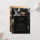 Este convite de casamento floral preto e dourado elegante pode ser personalizado com suas informações em tipografia moderna e uma foto especial no verso. Desenhado por Thisisnotme©
