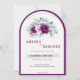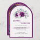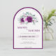 Este elegante convite de casamento apresenta um design rústico com um belo arranjo floral em tons roxos, pincéis e brancos. O quadro arquivado adiciona um toque de sofisticação, enquanto a simples tipografia se concentra nos detalhes. Perfeito para um casamento de primavera ou verão, este convite vai impressionar seus convidados.