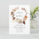 Este convite floral rústico captura a essência da estação de outono romântica com tons quentes de marfim, creme, marrom e laranja-ferrugem. A design captivadora combina sem falhas a beleza da caligrafia com uma coroa de flores do outono e uma folhagem delicada, trazida à vida através da arte das aquarelas, criando um bem-estar verdadeiramente mesmante para o seu dia especial. Personalize o elegante convite de casamento no outono com seus nomes e detalhes de casamento. A parte traseira do convite para o casamento outono exibe a foto vertical do noivado com sangramento de cheio. Esta design coordena-se com a nossa coleção de casamentos Florais Rustic Autumn.