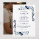 Convite Casamento De Foto Floral Elegante Azul Marinho E B