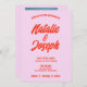 Este convite para o casamento é perfeito para o seu casamento se você estiver procurando um design único e fácil de ser editado. Um simples e elegante convite de modelo de casamento roxo e minimalista. Que apresenta um plano de fundo cor-de-rosa comum. E os primeiros nomes da noiva e do noivo laranja e arrojado dos anos 70. e informações editáveis com as iniciais da noiva e do noivo no verso e uma foto e um código QR personalizável. Barato e é também um e-convite eletrônico digital se você quiser enviá-lo por texto ou email. Todas as informações são personalizáveis clicando no botão personalizar. Então pegue-o e faça-o seu para que você faça você convidar noivos e excitados.