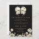 Este convite de casamento com caveiras florais góticas 'até que a morte nos separe' preto e dourado pode ser personalizado com suas informações em tipografia moderna e foto especial no verso. Criado por Thisisnotme©