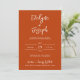 Um convite de modelo de casamento simples e elegante. Que apresenta fundo laranja queimado. E os primeiros nomes da noiva e do noivo, com letras brancas e simples, e informações editáveis com o website RSVP. Barato e é também um convite eletrônico digital. Todas as informações são personalizáveis clicando no botão personalizar. Então pegue-o e faça-o seu para que você faça você convidar noivos e excitados.