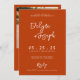 Um convite de casamento para caligrafia de terracotta simples e elegante. Que apresenta um simples modelo design de laranja inteiro queimado. Com pinceladas brancas, a mão apontou a noiva e os nomes do noivo. Com o site rsvp no final. E foto personalizável no verso. É Barato e é um e-convite eletrônico digital também. Todas as informações são personalizáveis clicando no botão personalizar. Então pegue-o e faça-o seu para que você faça você convidar noivos e excitados.