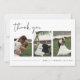 Este cartões de agradecimentos de casamento apresenta uma fonte escondido e manuscrita, 3 slots de fotos e design moderno minimalista. Use estas modelos para editar todos os textos, fontes, cores de fonte e a cor de fundo para corresponder ao seu estilo de evento. Edite facilmente as fotos na frente para corresponder ao seu evento especial.