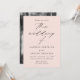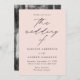 Convite de casamento minimalista e moderno, com detalhes de seu casamento em letras simples e pretas com "o casamento de" em um roteiro elegante de caligrafia com um fundo emboscado. O convite reverte para exibir sua foto de noivado vertical. Projetado para coordenar com a nossa coleção de casamento do Modern Elegance.