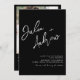 Convite de Casamento de Foto QR Code de Caligrafia Preto e Branco Minimalista Moderno. Este convite de casamento apresenta código QR de casamento com detalhes e um site de casamento. Uma foto do casal no verso.