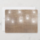 Estes convites de casamento country caprichosos vêm como um conjunto de casamento combinado com um efeito de fundo de aniagem marrom rústico, uma foto da noiva / noivo, luzes cintilantes de corda de jarra de mason elegante, as palavras "COMA, BEBE E CASE-SE" e os detalhes do seu casamento.